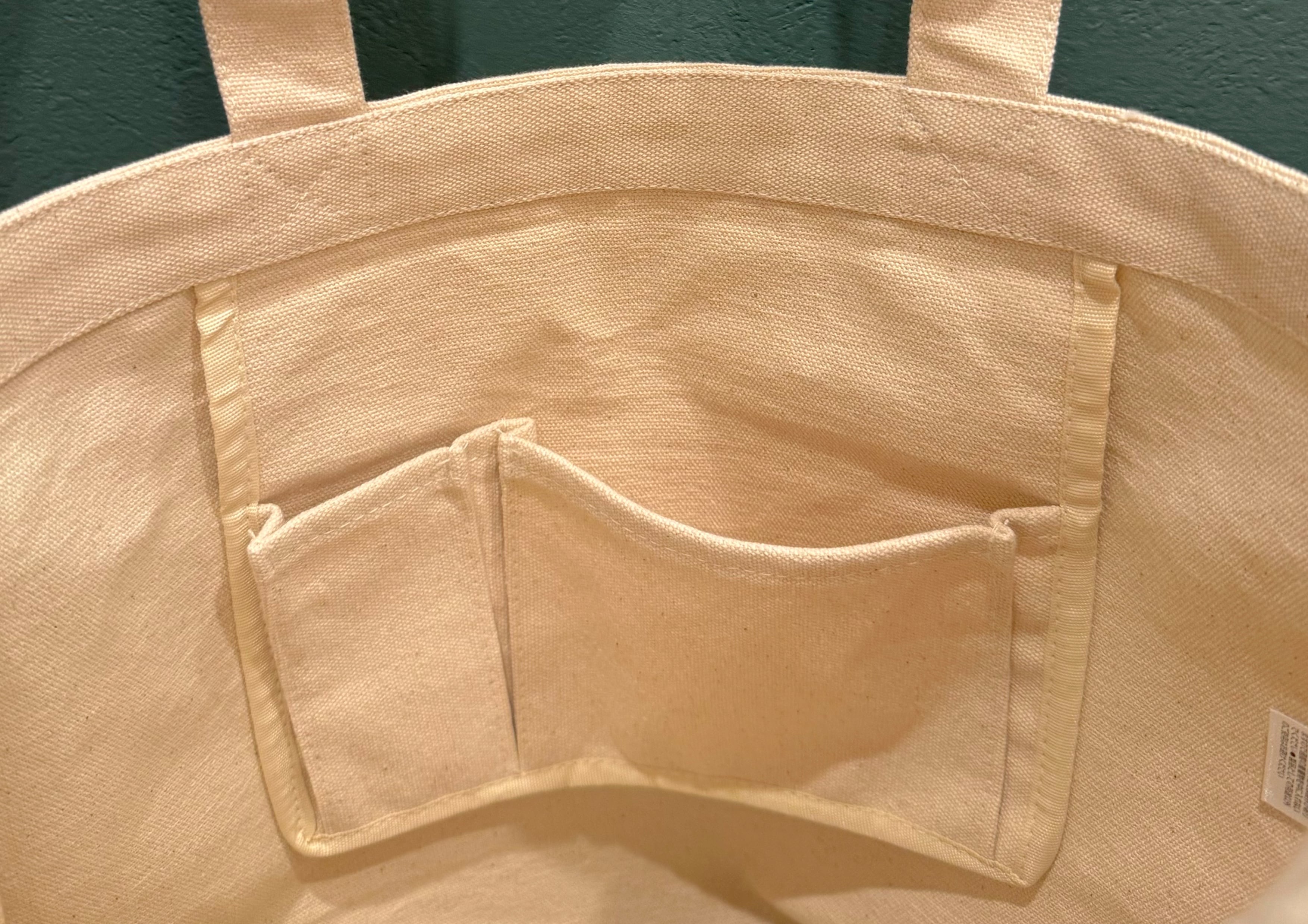 肩掛けができA4サイズも収納可能。小物収納にも便利な内ポケット付き。